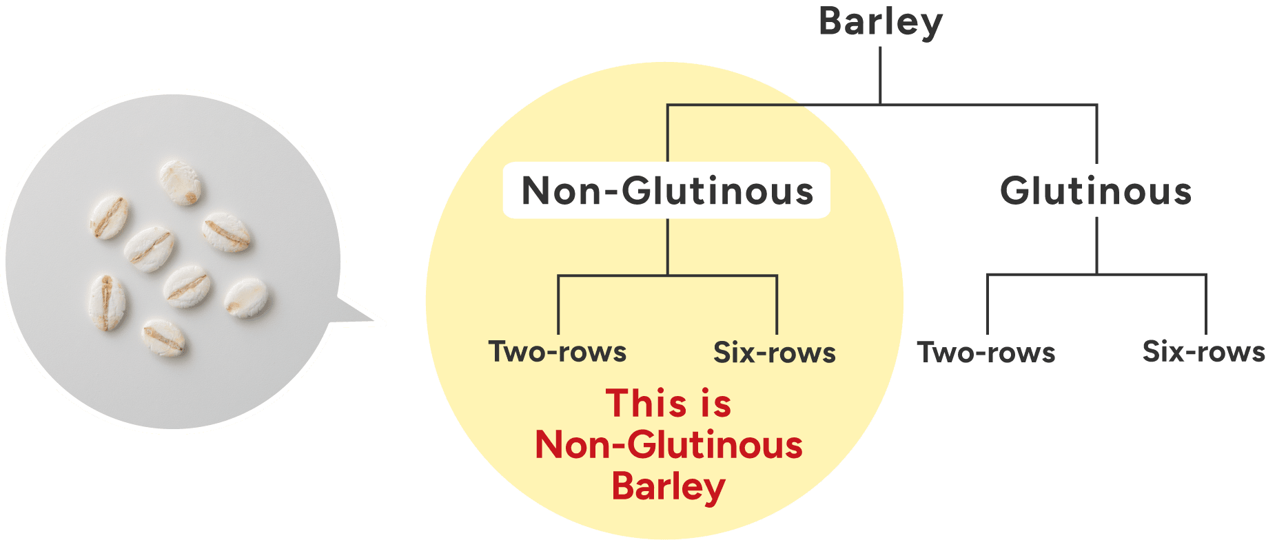 Barley is one of the oldest grains in the world and is widely used in products like beer, whiskey, miso, and barley tea. Similar to rice, which is categorized into “non-glutinous” and “glutinous” types, barley also comes in “non-glutinous” and “glutinous” varieties, with further classifications into “Two-rows” and “Six-rows” types. Non-Glutinous barley is the general term for barley with “non-glutinous” properties. Unlike Glutinous barley, which contains a high amount of amylopectin that gives it a chewy texture, Non-Glutinous barley contains very little amylopectin, resulting in a light, smooth texture.