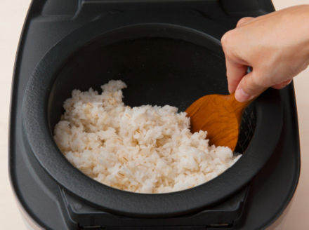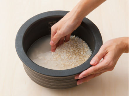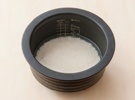 Rinse the rice thoroughly and add water according to the usual measurement on your rice cooker’s scale.